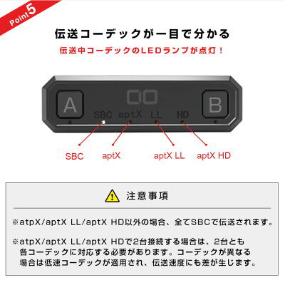 HOME > ニュース > AV&ホームシアターニュース 12/13までクーポン使用で2,780円に Nintendo Switchに2台同時ペアリングできるトランスミッター。aptX LL/HDにも対応 編集部:杉山康介 2020年12月07日 次の写真へ 本体のLEDランプで接続コーデックが分かるようになっている 次の写真へ この写真の記事へ 関連リンク 製品の詳細 Amazon販売ページはこちら