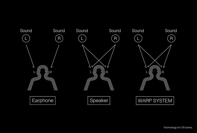 「WARPシステム」で左右の信号を適度にミックスし、スピーカーで聴いているような音響を再現