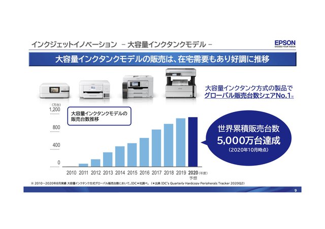 インクジェットプリンターは大容量インクタンクモデルが伸長