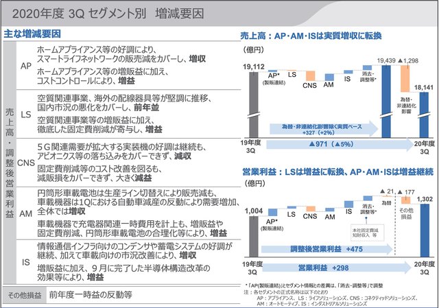 パナソニック、20年3Qは増益で年間見通しも上方修正。コロナによる社会変化を捉えた増販と経営体質強化で