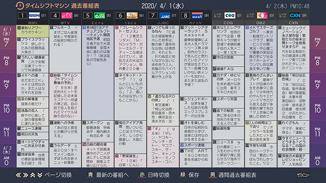 HOME > ニュース > AV&ホームシアターニュース 使い勝手も改善 東芝、“レグザ”と連動して録画番組を高画質化する全録BDレコーダー「DBR-M4010/M3010」 編集部:成藤 正宣 2021年02月16日 前の写真へ 次の写真へ タイムシフトマシン内蔵レグザと組み合わせれば、最大13チャンネル分の過去番組表が表示可能 前の写真へ 次の写真へ この写真の記事へ 関連リンク 「レグザタイムシフトマシン」公式ページ 東芝映像ソリューション
