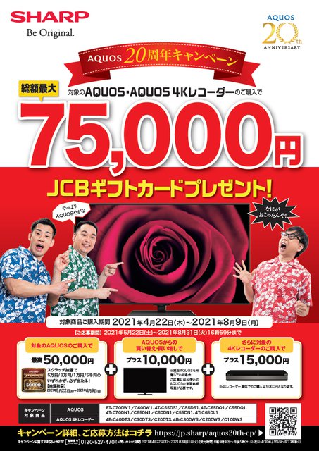 シャープ、液晶テレビ“AQUOS”誕生20周年を記念した最大7.5万円のキャッシュバックキャンペーン