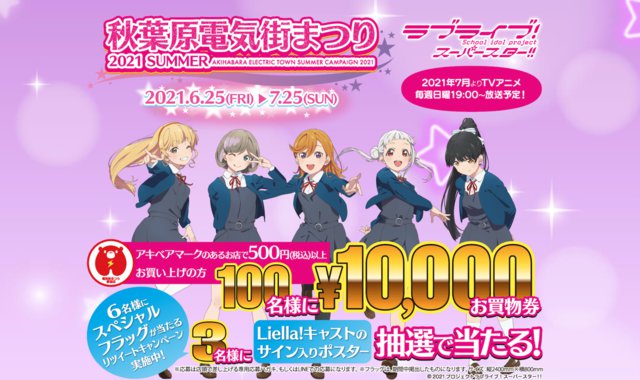 HOME > ニュース > AV&ホームシアターニュース コロナ禍の中でも安心・安全でお客様ニーズに対応 『ラブライブ!スーパースター!!』とのコラボで開催、「夏の秋葉原電気街まつり」は6月25日から PHILEWEBビジネス 徳田ゆかり 2021年06月21日 前の写真へ 次の写真へ 「夏の秋葉原電気街まつり」は「ラブライブ!スーパースター!!」とコラボ 前の写真へ 次の写真へ この写真の記事へ 関連リンク 「夏の秋葉原電気街まつり」キャンペーンサイト 『ラブライブ!』公式サイト 『ラブライブ!スーパースター!!』公式サイト