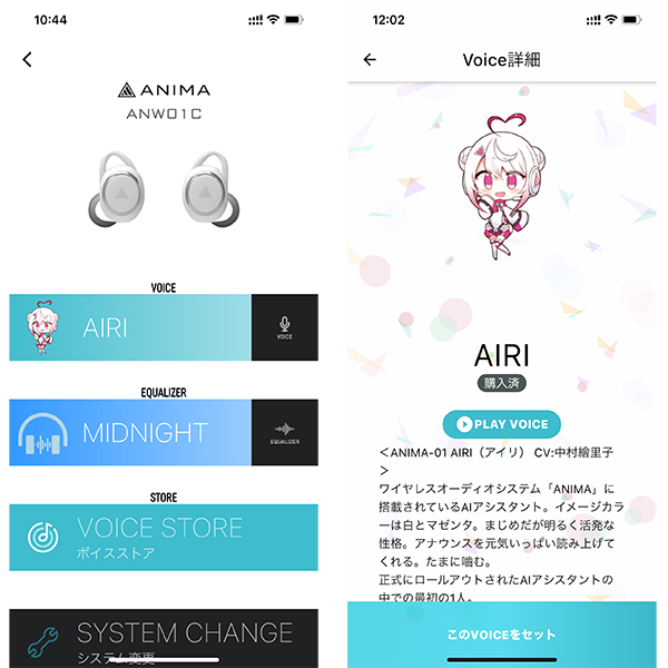 HOME > ニュース > AV&ホームシアターニュース 価格は税込980円 ANIMA、アプリでカスタムできる有料ボイス『VOICE STORE』第一弾キャラAIRI(CV:中村繪里子)提供開始 編集部:川田菜月 2021年07月12日 前の写真へ CV:中村繪里子の「AIRI」がダウンロード可能に 前の写真へ この写真の記事へ 関連リンク Google Play Storeでの配信ページ App Storeでの配信ページ ANIMA