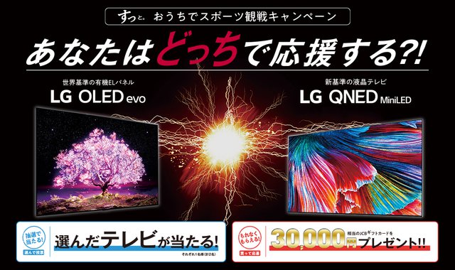 HOME > ニュース > AV&ホームシアターニュース 「すっと。おうちでスポーツ観戦キャンペーン」 LG、4Kテレビが当たるTwitterキャンペーン。製品購入者全員への3万円還元も 編集部:松永達矢 2021年07月21日 前の写真へ 「すっと。おうちでスポーツ観戦キャンペーン」 前の写真へ この写真の記事へ 関連リンク キャンペーンサイト LGエレクトロニクス・ジャパン