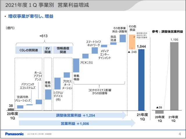 パナソニック、21年1Q決算は大幅増収増益。アプライアンスとインダストリアルソリューションズが牽引、コロナ影響から回復