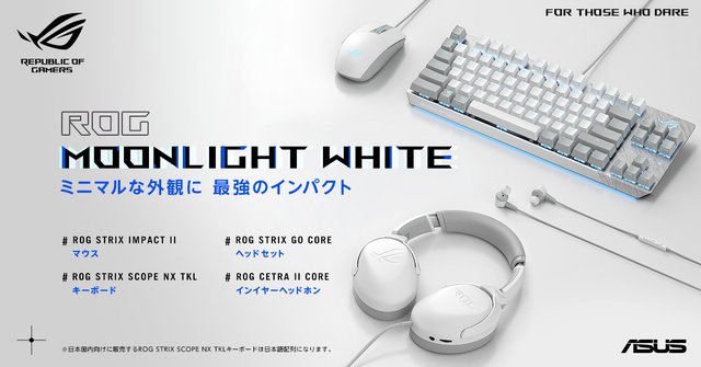 ASUS、白を基調としたゲーミングデバイス「ROG Moonlight White」シリーズ。ヘッドセットなど4製品