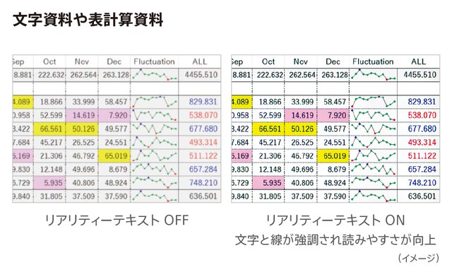 細かい文字や線などを強調する「リアリティテキスト機能」が追加