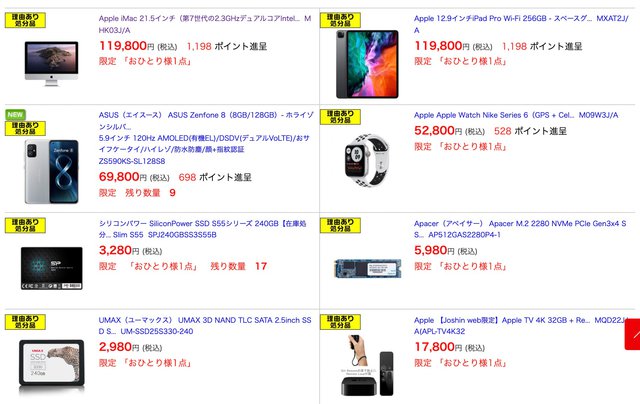 HOME > ニュース > AV&ホームシアターニュース 1月24日朝まで ジョーシンweb、アップル製品も対象のアウトレットセール。なくなり次第終了 PHILE WEB編集部 2022年01月15日 MacやiPadなどアップル製品も安くなっている この写真の記事へ 関連リンク Joshin webショップ アウトレットセール