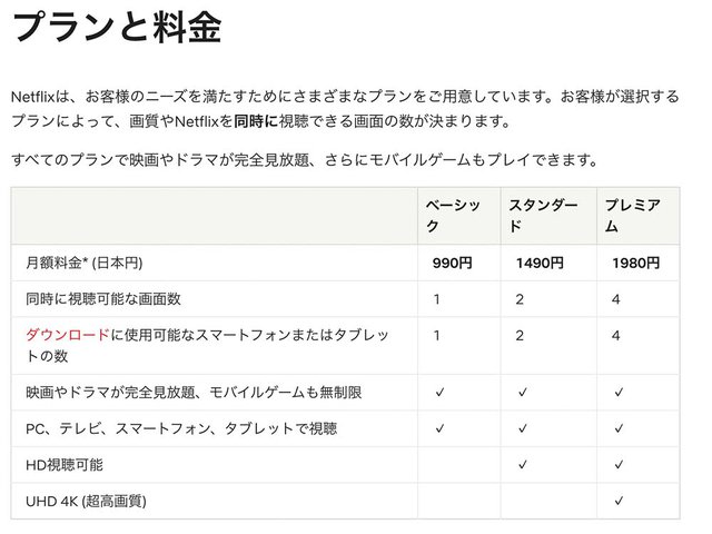 HOME > ニュース > AV&ホームシアターニュース 月額プランが1-2ドル増 米Netflixが料金値上げ。日本の価格は現状据え置き ファイルウェブ編集部 2022年01月17日 次の写真へ 日本の料金プラン表 次の写真へ この写真の記事へ 関連リンク Netflix