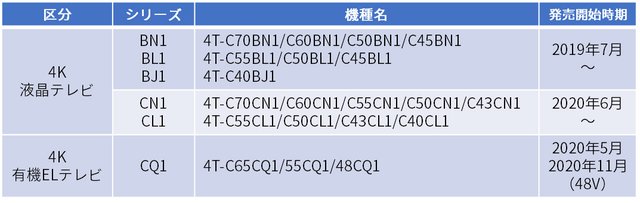 シャープ、一部4Kテレビで「テレビが映らない」不具合発生に対する復旧ソフトウェア公開