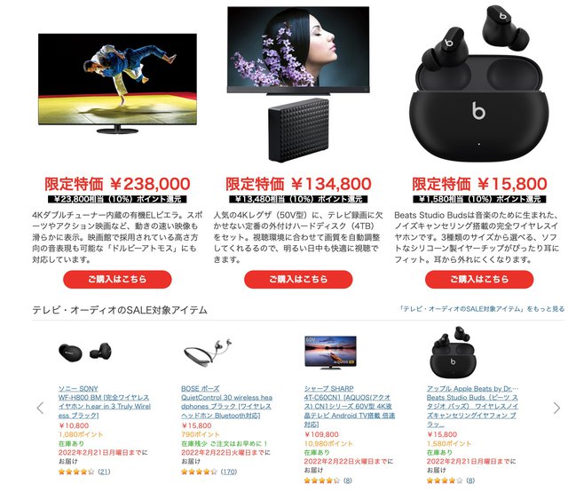 ヨドバシcom、2/23限定の24時間セール。ソニーやBeat完全ワイヤレス、テレビ/PCなどおトクに
