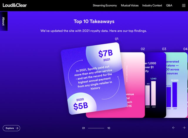 HOME > ニュース > AV&ホームシアターニュース 「Loud&Clear」をアップデート Spotify、2021年は過去最高の70億ドルを音楽業界に還元 編集部:平山洸太 2022年03月25日 10個のハイライトを掲載 この写真の記事へ 関連リンク Loud&Clear(英語)