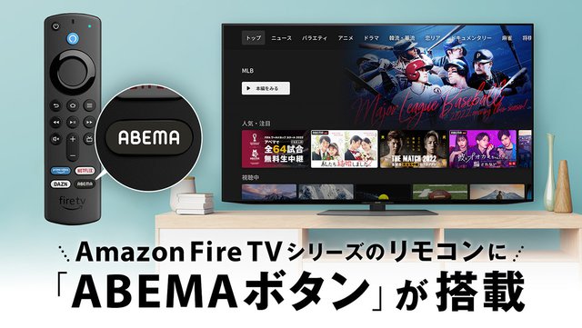 HOME > ニュース > AV&ホームシアターニュース リモコンの単体購入も可能 Amazon“Fire TVシリーズ”に「ABEMAボタン」付きリモコンが登場。本日4月15日から発売 編集部:成藤 正宣 2022年04月15日 Amazon Fire TVシリーズに、「ABEMAボタン」付きリモコンがラインナップ ©AbemaTV,Inc. この写真の記事へ 関連リンク 本件に関するニュースリリース ABEMA 「ABEMAボタン」付リモコン販売ページ(Amazon)