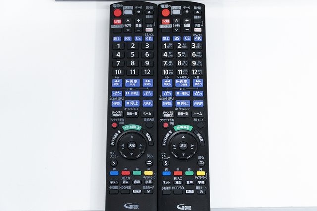 写真左が最新のリモコンで、右が前モデルのリモコン。テンキーのシンプル化や「新着番組」→「おすすめ録画一覧」への変更などが行われている