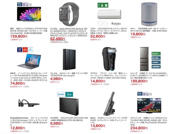 HOME > ニュース > AV&ホームシアターニュース 全員にポイントが返ってくるCPも iPadもApple Watchも安く!ビックカメラcomでGW期間限定セール開催中 PHILE WEB編集部 2022年05月07日 「ゴールデンウィーク限定オンラインセール」の注目商品一覧 この写真の記事へ 関連リンク ビックカメラのセール会場を見る