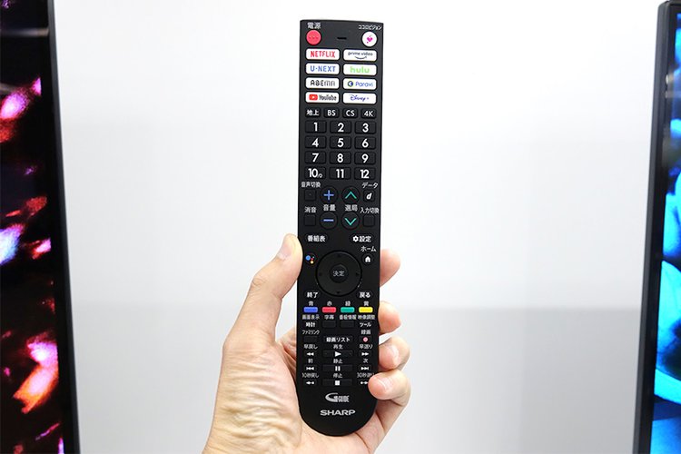 付属リモコン。8つの映像配信サービスのダイレクトボタンを配置