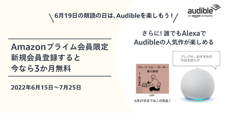 HOME > ニュース > AV&ホームシアターニュース Alexaでおすすめ作品が楽しめるサービスも Amazonの“聴く読書”「Audible」、プライム会員限定の3ヶ月無料キャンペーン。6/19の「朗読の日」にあわせ ファイルウェブ編集部 2022年06月15日 次の写真へ プライム会員限定のオーディブル3ヶ月無料キャンペーンが開催 次の写真へ この写真の記事へ 関連リンク Audibleの新規登録はこちらから