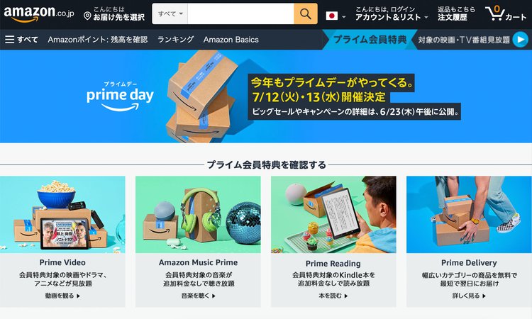 HOME > ニュース > AV&ホームシアターニュース 計24か国で実施 Amazon「プライムデー」7/12-13に開催決定。年に一度のビッグセール PHILE WEB編集部 2022年06月16日 プライムデーの告知ページ この写真の記事へ 関連リンク プライムデーの告知ページ
