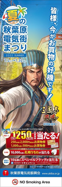 HOME > ニュース > AV&ホームシアターニュース コーエーテクモゲームス『三国志 覇道』とコラボ お買い物券や「孔明うちわ」が当たる抽選くじも。「夏の秋葉原電気街まつり」7/1開始 PHILEWEBビジネス 徳田ゆかり 2022年06月24日 前の写真へ 中央通りフラッグ 前の写真へ この写真の記事へ 関連リンク 2022年「夏の秋葉原電気街まつり」サイト 秋葉原電気街振興会
