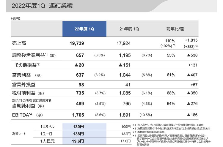 パナソニックホールディングス、2022年度1Q決算は経営環境変化による影響が響き減益に