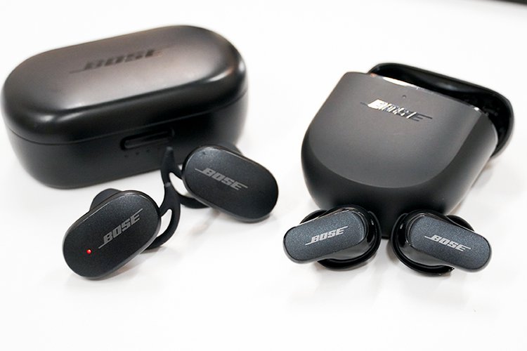 写真左がBose QuietComfort Earbuds初代。ケース、イヤホンともに小型軽量化を実現した