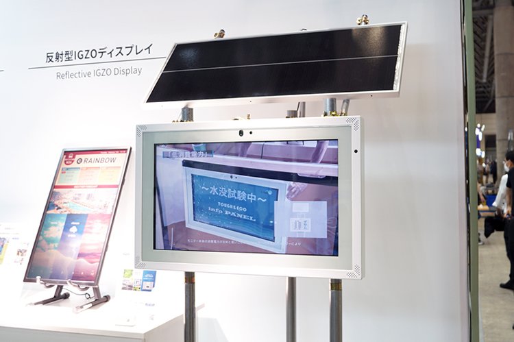 HOME > ニュース > AV&ホームシアターニュース テーマは「デジタルヘルスケア」「カーボンニュートラルへの貢献」 <CEATEC>シャープ、屋内光発電デバイスなどSDGs貢献技術が多数登場! 完全ワイヤレス型補聴器も 編集部:伴 修二郎 2022年10月17日 前の写真へ 屋外サイネージ「タフ&エコ インフォパネル」 前の写真へ この写真の記事へ 関連リンク CEATEC 2022