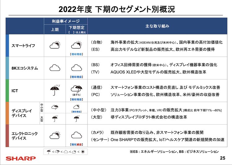 シャープの2022年度2Q決算、最終利益マイナス165億円に。円安の急速進展、ディスプレイ市況の悪化など影響
