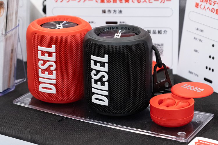 DIESELのポータブルスピーカーやM-SOUNDSの完全ワイヤレスなども展示されていた
