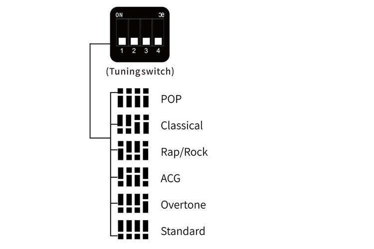 4つのチューニングの組み合わせにより16種類の音色を楽しめる