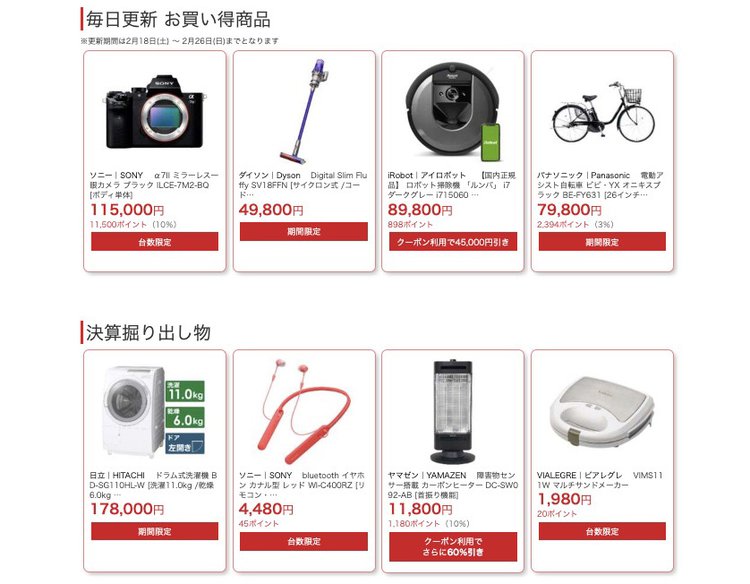 HOME > ニュース > AV&ホームシアターニュース 期間限定のお買い得品が多数 ビックカメラcomの決算セール、65型BRAVIAやルンバ上位機、ダイソン掃除機など安く PHILE WEB 2023年02月25日 毎日更新のお買い得商品と決算掘り出し物の一部 この写真の記事へ 関連リンク ビックカメラ.comで詳細を見る