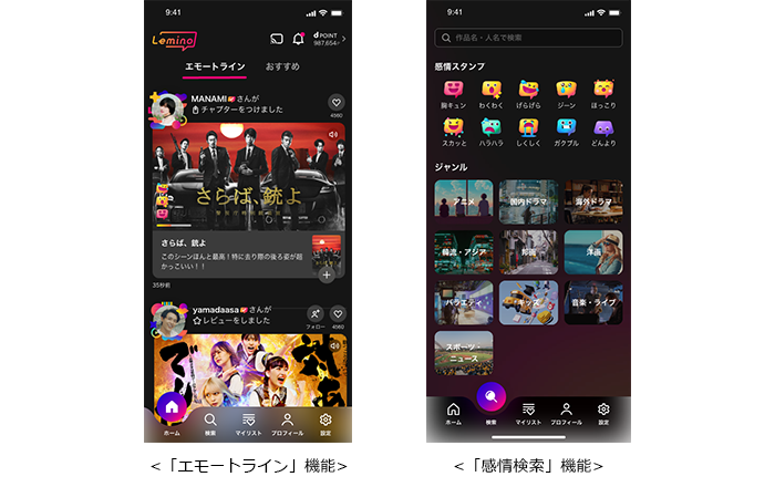 HOME > ニュース > AV&ホームシアターニュース dTVをリニューアル ドコモ、新映像配信サービス「Lemino」を提供。無料/月額990円、レビューをシェアして作品を見つけやすく ファイルウェブ編集部 2023年03月06日 前の写真へ 「感情」をキーワードに、探すことも楽しめる動画サービスとなっている 前の写真へ この写真の記事へ 関連リンク ニュースリリース
