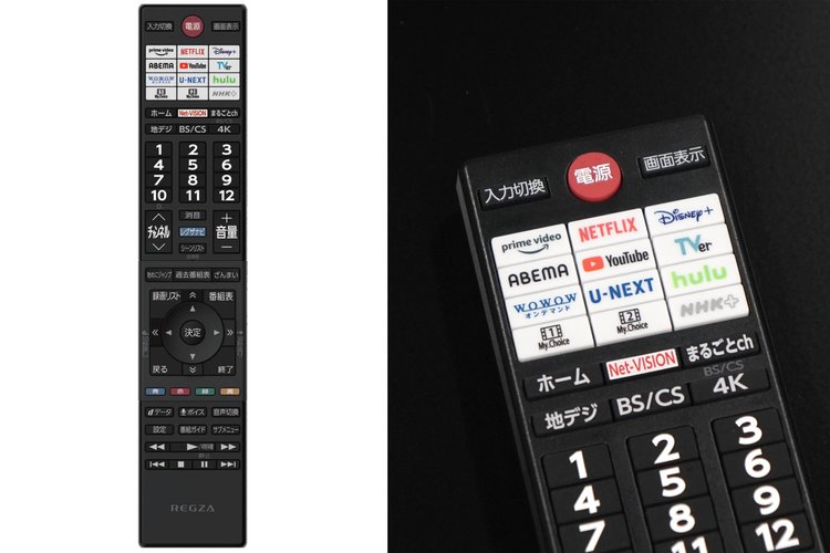 リモコンには、新たにNHKプラス、WOWOWオンデマンドのダイレクトボタンを追加