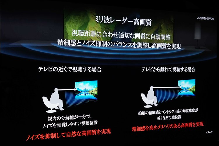 ミリ波レーダーによって視聴者の視聴位置を認識し、視聴位置に合わせて最適な画質・音質に自動で調整する