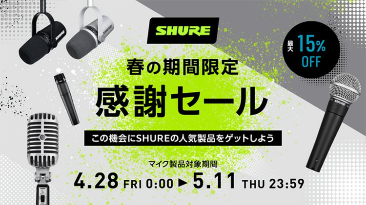 マイク製品は最大15%オフ。人気のMV7などが対象に
