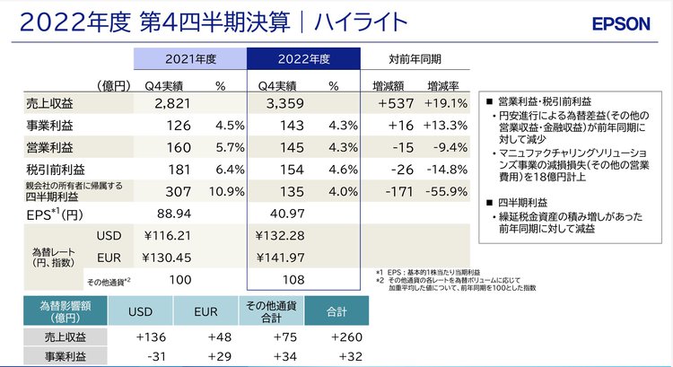 エプソン、2022年度インクジェットプリンター販売台数は過去最高。通期で増収・増益に