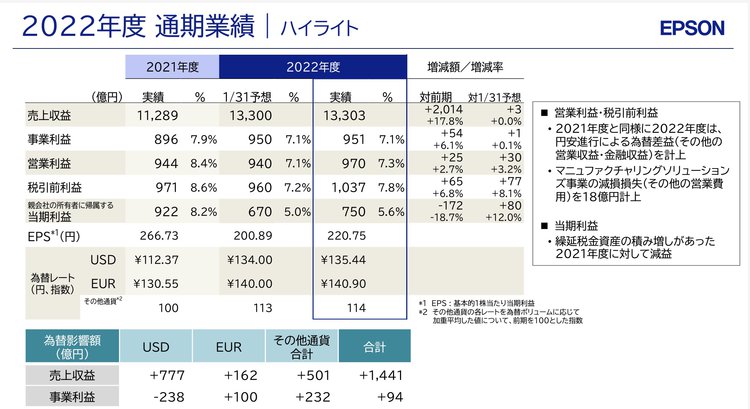 エプソン、2022年度インクジェットプリンター販売台数は過去最高。通期で増収・増益に