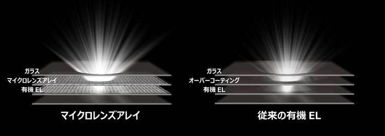 「マイクロレンズアレイ」によりパネル内での光の反射を抑え、輝度を大幅にアップした