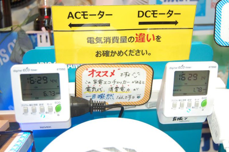 値上がりが続く電気代へ敏感になるなか、ACモーターとDCモーターによる電気消費量の違いを一瞥してわかるように工夫する