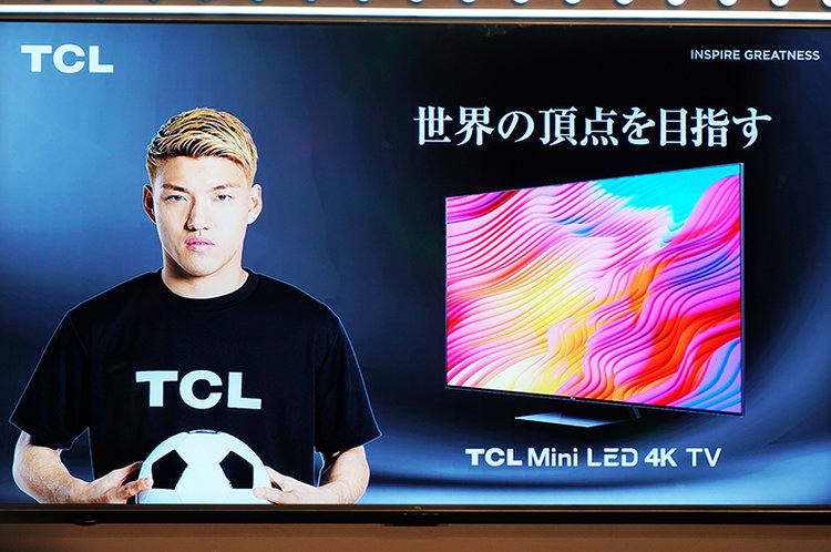 TCLの98インチテレビをサッカー日本代表・堂安律選手が体験。新CMは“サッカー以外の演技”に注目