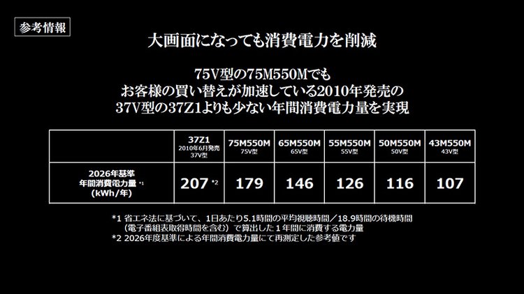 レグザ、省エネ追求のスタンダード4Kテレビ「M550M」。75型でも2010年の37型機以下の消費電力
