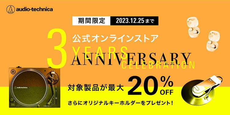 オーディオテクニカ、対象製品が最大20%オフの公式オンラインストア3周年記念キャンペーン