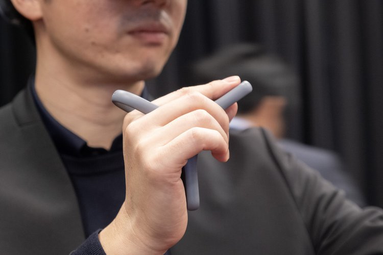 ポインティング型コントローラーはテトラポットのような形状で、人差し指の先端部分にクリックボタンを備える