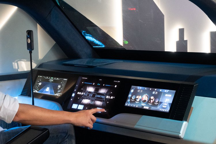 写真ではわかりにくいが、フロントガラスに表示されているのがレーザーディスプレイ