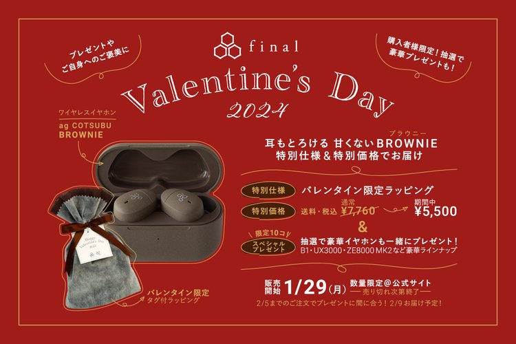 ag、完全ワイヤレスイヤホン「COTSUBU BROWNIE」が特別価格になるバレンタインデーキャンペーン