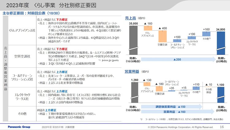 2023年度のくらし事業 分社別の修正要因