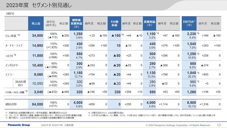 パナソニック23年度3Q決算はオートモーティブがけん引し増収増益。脱炭素社会に向け欧州空調事業強化を継続