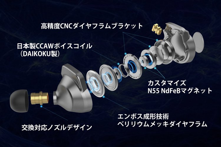 15.4mm大口径ダイヤフラムをはじめ、カスタマイズ高磁力N55 NdFeBマグネットなど高音質技術を採用