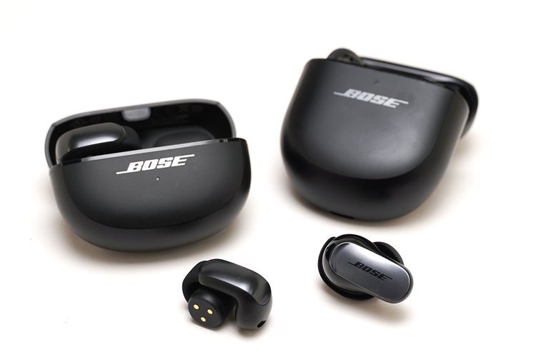写真左がBose Ultra Open Earbuds、写真右がBose Ultra Earbuds。密閉型とオープンイヤーで異なる仕様だが、両モデルともBoseイマーシブオーディオに対応する
