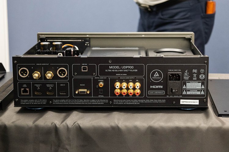 UDP900の背面端子。ステレオ出力はRCAとXLRを装備、7.1chのアナログ出力端子はRCAとなる